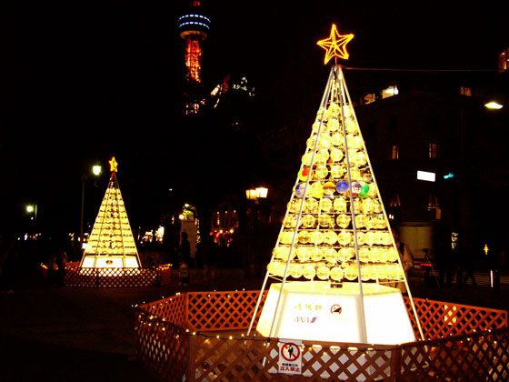 写真:山下公園の不思議なツリー(?)。確か、申し込みをして電球にメッセージを書けるのだったと思う。撮るのに夢中になって見なかった。