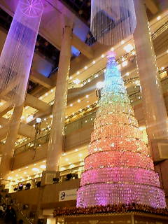 ランドマークのクリスマスツリーは、オーナメントが全てスワロフスキーだということで、雑誌で見ても凄くきれいなので見てみたかった。